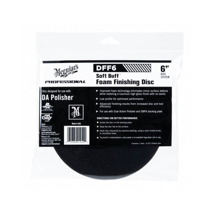Tehnologia imbunatatita a buretelui Meguiars DFF elimina defectele minore ale suprafetei in timp ce reface luciul, fara holograme. Buretele polish finish pentru masini orbitale DFF are un profil redus pentru performanta optimizata. Ideal atunci când este utilizat cu o masina de polish orbitala si cu talerele Meguiar's® DBP - Soft Buff ™. Discurile de burete sunt lavabile la masina si reutilizabile. Sistemul velcro se prinde cu fermitate.
