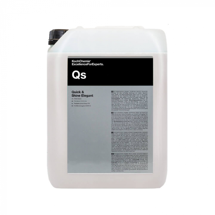 Solutie detailing rapid Koch Chemie Quick Shine, Qs, 10L Solutia detailing rapid Koch Chemie Quick Shine, Qs este un produs cu calitati recunoscute de ingrijire pentru toate suprafetele netede si vopsite. Quick Shine, Qs curata, ingrijeste si conserva intr-un singur pas vopsele auto, lemn vopsit, sticla, piese de plastic, habitacluri, mobilier vopsit si instrumente muzicale, suprafete din otel inoxidabil etc. Suprafetele raman cu un efect de intensificare a profunzimii culorii, fara urme si cu un luciu sclipitor. Amprentele si murdaria usoara sunt indepartate rapid si fara efort. Suprafetele tratate sunt conservate si resping apa si murdaria si sunt protejate impotriva remurdaririi rapide (efect de lotus). Quick and Shine se indeparteaza repede si, prin urmare, este usor de utilizat. Tratamentele (polish, ceara) aplicate anterior sunt pastrate. Foarte potrivit pentru finisarea rapida a produselor expuse in showroom-uri sau la expozitii, precum si pentru pregatirea rapida a vehiculelor. Domeniu de utilizare: vopsele auto, lemn vopsit, sticla, piese din plastic, habitacluri, mobilier vopsit si instrumente muzicale, suprafete din otel inoxidabil, etcIndicatii de utilizare: aplicați uniform prin pulverizare pe suprafetele care trebuie tratate si lustruiti cu o laveta profesionala din microfibra.