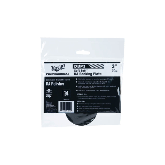Talerele Meguiars Soft Buff DA Backing Plate sunt proiectate pentru a asigura o presiune uniforma si constanta pe suprafata pentru o corectie a vopselei si un rezultat optime. Talerul Soft Buff DA Backing Plate are un indicator de rotatie iti permite sa recunosti rotatia talerului pentru a obtine cele mai bune rezultate. Datorita sistemului de prindere cu arici, schimbarea buretilor este rapida. Talerele Soft Buff DA Backing Plate sunt compatibile cu masinile de polishat orbitale cu ax de 5/16". Pentru rezultate optime, utilizati impreuna cu Meguiar's Dual Action Polisher MT300 si cu buretii Soft Buff (DFC, DFP, DFF) sau cu discurile cu microfibra (DMX, DMC, DMF).