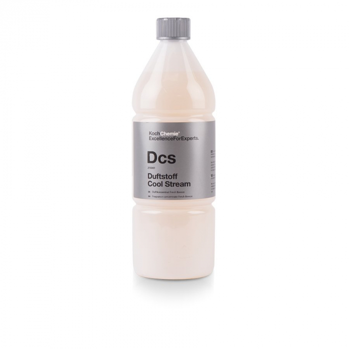 Dcs - Parfum concentrat Cool Stream cu aromă fresh breeze, 1 ltr Koch Chemie Dcs este un parfum foarte concentrat cu aromă Briza Mării pentru parfumarea spălătoriilor auto. Se poate utiliza nediluat în Fresh-S-Center (999331).