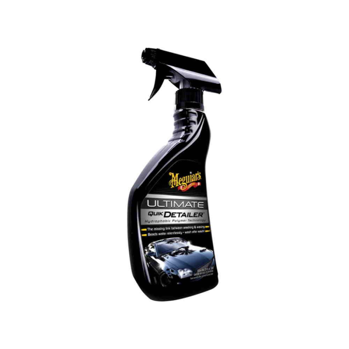 Solutie detailing rapid Meguiars Ultimate Quik Detailer indeparteaza in siguranta praful, excrementele de pasare si alti contaminanti intre spalari. Imbunatateste protectia cearii, imbunatateste stralucirea, culoarea si luciul. Meguiars Ultimate Quik Detailer utilizeaza tehnologie si protectia polimerica hidrofoba pentru un efect de curgere al apei de pe suprafata mai puternic. Formula de lubrifiere este sigura pentru lacurile incolore si este ideala pentru toate tipurile de vopsea si lasa in urma o suprafata super alunecoasa si foarte profunda. Solutia are un pH neutru care nu va indeparta protectia cerurilor aplicate. Solutie detailing rapid Meguiars Ultimate Quik Detailer este ideala atunci cand este folosita cu un prosop de microfibra de inalta calitate, precum Meguiars Supreme Shine Microfiber - X2020.