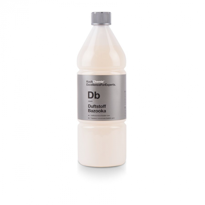 Db - Parfum concentrat Bazooka cu aromă bubble gum, 1 ltr Koch Chemie Db este un parfum concentrat cu aromă proaspătă de gumă de mestecat pentru parfumarea spălătoriilor auto. Se poate utiliza nediluat în Fresh-S-Center (999331).