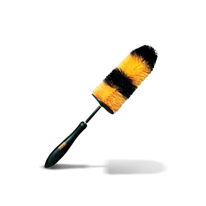 ADBL Wheel Sword este o perie cu forma cilindrica pentru curatarea jantelor. Perii moi si delicati prevazuti cu terminatii despicate ofera o atingere delicata, potrivita pentru toate tipurile de jante. Wheel Sword este flexibila si are o densitate de peri redusa, ceea ce permite intoducrea acestora in cele mai stramte spatii, acolo unde alte perii au dificultati in a curata. Este o perie durabila si rezistenta la materiale chimice. Firele isi revin la forma initiala dupa utilizare si rezista chiar si la cele mai agresive solutii de curatare. Peria este prevazuta cu un maner armat si flexibil si cu un scut din cauciuc pentru a face rasucirea si indoirea usoare si sigure din orice unghi. Se poate utiliza pe toata roata (janta si cauciuc) si pe un tip variat de spite. POate fi insa utilizata foarte bine si in compartimentul motor. Dupa fiecare utilizare, clatiti bine cu apa si atarnati pentru uscare.