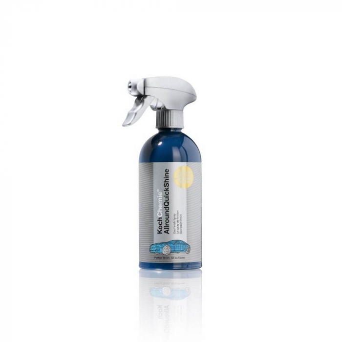 Allround Quick Shine, soluție detailing rapid, 500 ml Koch Chemie Allround Quick Shine este o ssoluție universală pentru curățare și protecție. Allround Quick Shine curăță, menține și conservă toate suprafețele netede și vopsite (vopsea, sticlă, materiale plastice, mobilier, etc.). Ideală pentru menținerea bordului și pentru tratarea după spălare a vopselei și a suprafețelor vitrate, precum și pentru o finisare rapidă. Creează o suprafață curată și lucioasă într-un singur pas. Cerurile sau tratamentele aplicate anterior se vor păstra.