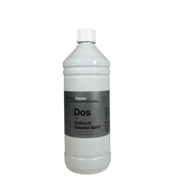 Parfum super concentrat lemn santal Koch Chemie Oriental Spirit, Dos, 1LParfumul super concentrat Koch Chemie Oriental Spirit, Dos are o aroma de lemn de santal cu care se pot parfuma spalatoriile auto cu ajutorul Fresh-S-Center (999331). Daca utilizati Oriental Spirit la interior, nu pulverizati mai mult de 1 ml (2 pulverizari) si aplicati intr-o zona putin vizibila, in apropierea gurilor de ventilatie de sub scaune sau de sub bord. Utilizati cu un pulverizator rezistent la solvent. * Destinat exclusiv utilizatorilor profesionisti!