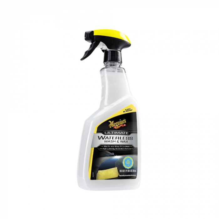 Solutie spalare rapida fara apa Meguiar's Ultimate Waterless Wash and Wax, 768mlCuratenie si stralucire instanta! Transforma spalarea masinii intr-un proces rapid si eficient cu solutia spalare rapida fara apa Meguiar's Ultimate Waterless Wash and Wax. Ideala pentru cei care isi doresc o masina curata si stralucitoare fara a utiliza apa, aceasta solutie premium combina curatarea profunda cu protectia superioara a cerii, oferindu-ti rezultate remarcabile oriunde te-ai afla. Solutia pentru spalare rapida fara apa Ultimate Waterless Wash and Wax este solutia ideala pentru locuitorii din mediul urban sau pentru cei care tocmai au ajuns in vacanta. Ultimate Waterless Wash and Wax indeparteaza murdaria lasand in urma un strat protector de ceara sintetica cu efect hidrofob. Este solutia perfecta pentru "spalat oriunde". In maxim 15 minute, acest sampon pentru spalare fara apa transforma o masina murdara intr-una curate si stralucitoare si asta fara nici o picatura de apa. Mai mult, in functie de cat de murdara e masina, cu ajutorul unei sticle de Ultimate Waterless Wash and Wax si al catorva prosoape de microfibra Supreme Shine, poti spala si cerui pana la 4 masini de dimensiuni medii.Domeniu de utilizare: suprafetele exterioare ale vehiculelorInstructiuni de utilizare: pur si simplu pulverizati pe suprafata masinii si stergeti folosind un prosop cu microfibra de calitate superioara. Aceasta solutie pentru spalare fara apa are in compozitie o substanta chimica unica pentru a asigura un finisaj fara urme sau zgarieturi atunci cand este utilizata conform instructiunilor (vezi filmul de prezentare). Lubrifiantii speciali si agentii de curatare inmoie si apoi indeparteaza usor murdaria. Suprafata trebuie stearsa apoi cu un o laveta curata si uscata. De ce sa cumperi solutia pentru spalare rapida fara apa Ultimate Waterless Wash and Wax?Economiseste timp, apa si efort cu acest produs inovator. Este solutia perfecta pentru intretinerea masinii tale in orice moment, fie ca te afli acasa, in vacanta sau intr-o parcare. In plus, protectia oferita de ceara prelungeste durata de viata a vopselei, facand masina sa arate impecabil zi de zi.