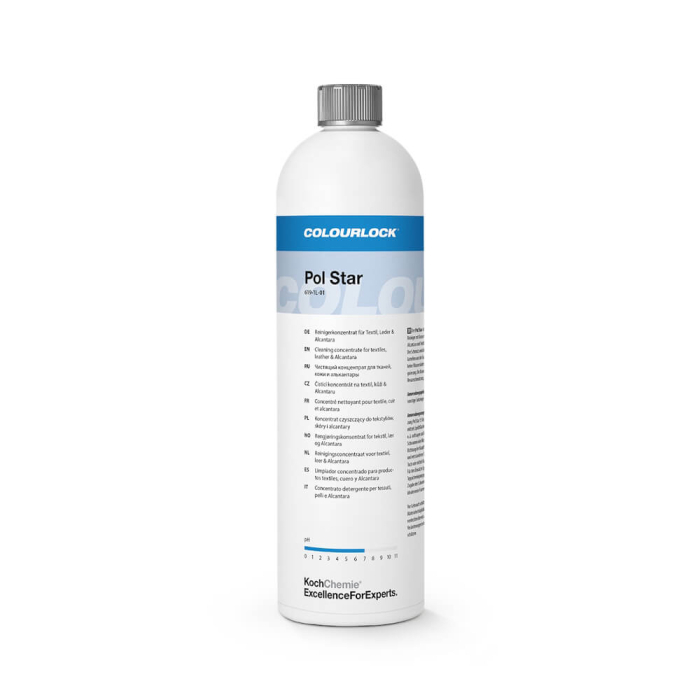 Solutie curatare textile, piele si alcantara Koch Chemie Pol Star, Po Curatare delicata si eficienta pentru textile, piele si Alcantara! Koch Chemie Pol Star, Po este o solutie premium de curatare pentru tapiterie textila, piele naturala si Alcantara, conceputa pentru a indeparta murdaria fara a deteriora suprafetele sensibile. Formula sa speciala curata in profunzime, lasand materialele curate, reimprospatate si fara reziduuri lipicioase. Avand un pH neutru, este potrivita chiar si pentru cele mai delicate suprafete, oferind protectie impotriva re-depunerii murdariei. Beneficii: Curatare eficienta si delicata - fara a deteriora suprafetele Formula cu pH neutru - sigura pentru piele si Alcantara Nu lasa reziduuri lipicioase - previne acumularea ulterioara a murdariei Ideal pentru detailing auto si uz casnic - versatil si usor de utilizat Domeniu de utilizare: ideal pentru curatarea tapiteriei textile, scaunelor din piele naturala, Alcantara, mochetei si plafonului auto, fiind utilizat atat in detailing auto, cat si pentru mobilierul de acasa. Nu lasa pete si pastreaza impermeabilizarea originala. Agenții de conservare protejeaza suprafetele si impiedica murdarirea rapida a acestora. Poate fi utilizat ca un all purpose cleaner (APC). Indicatii de utilizare: Dilueaza produsul in functie de gradul de murdarie (de obicei intre 1:5 si 1:20). Aplica solutia pe suprafata cu ajutorul unei lavete din microfibra, a unui burete sau a unei pensule/perii. Foloseste o perie moale sau un aplicator din microfibra pentru a agita usor murdaria. Sterge excesul de produs cu o laveta umeda curata sau aspira folosind un extractor de lichide. De ce sa alegi Koch Chemie Pol Star, Po? Pentru ca o tapiterie curata si bine intretinuta ofera un aspect impecabil interiorului masinii tale! Cu aceasta solutie de calitate profesionala, elimini eficient petele si murdaria, fara riscul de a deteriora materialele delicate, oferind protectie si prospetime de lunga durata. pH: 7.0